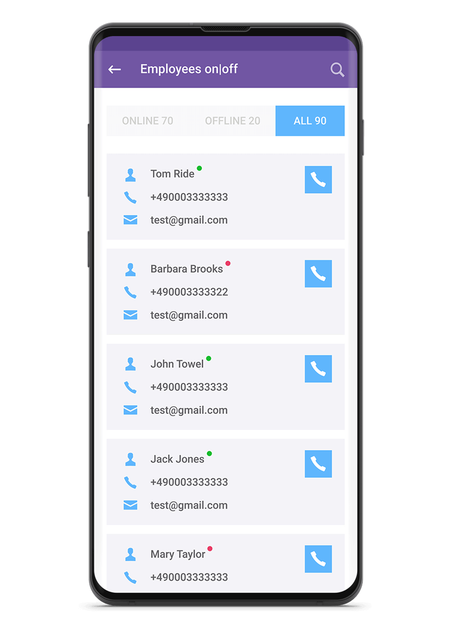 Richten Sie ein Unternehmen ein und fügen Sie Mitarbeiter hinzu. Holen Sie sich alle Statistiken und Audioaufnahmen von Gesprächen aus den Handys der Mitarbeiter im MyBusiness-Konto.