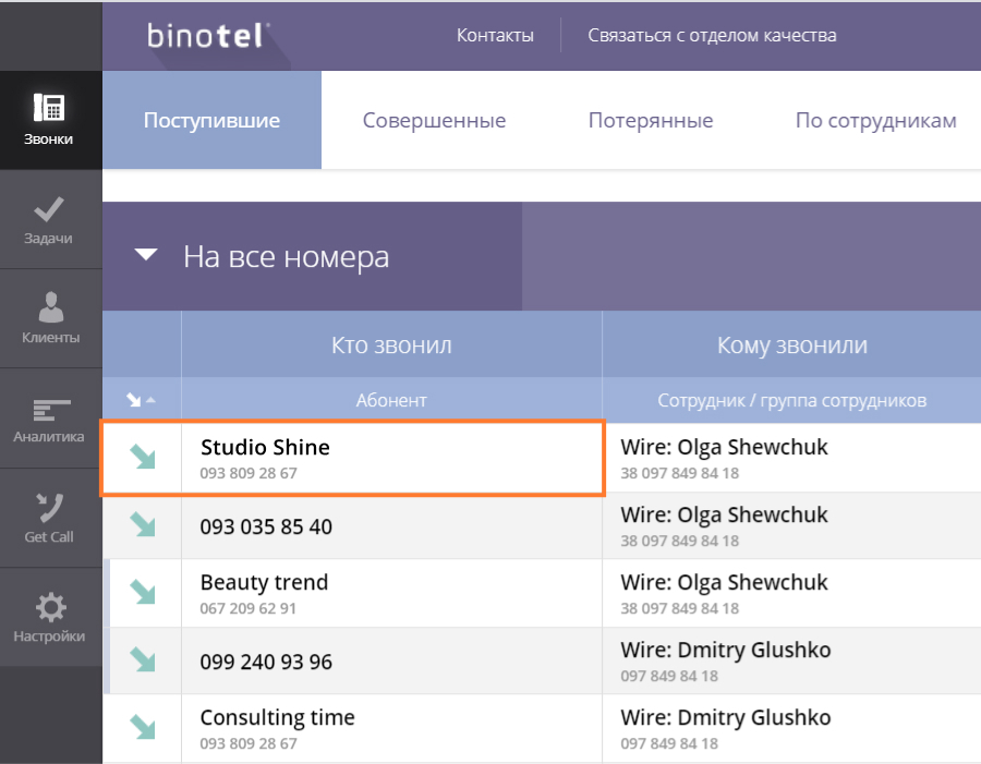 Аудиозаписи и данные о звонках помогают отслеживать и улучшать качество обслуживания.